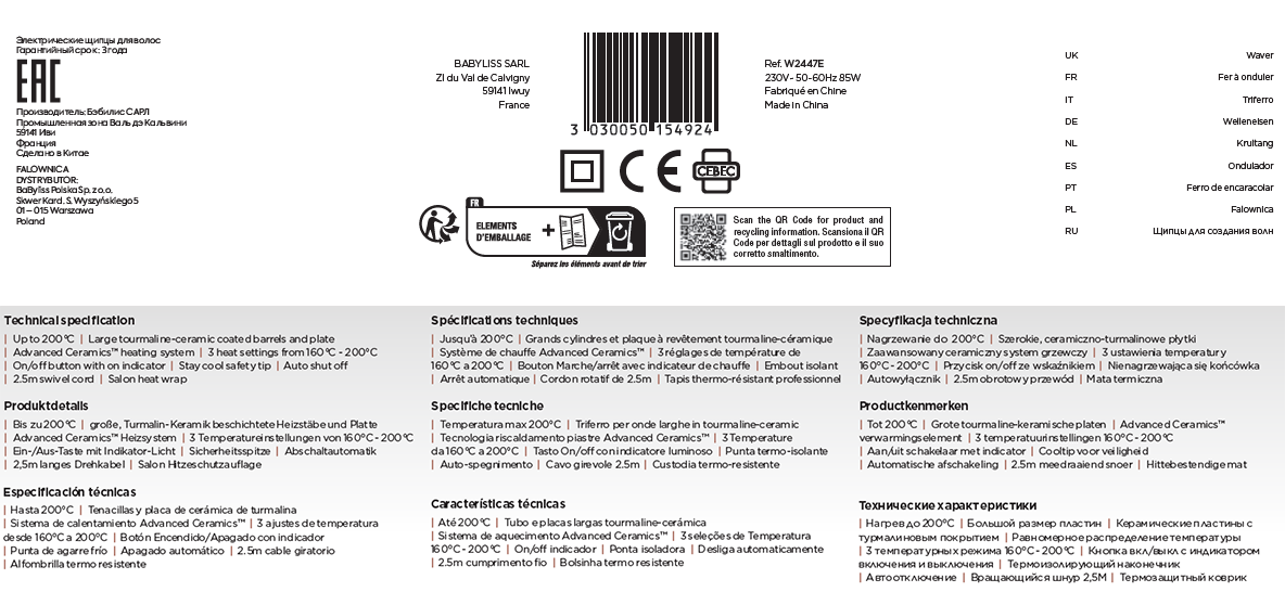 På BaByliss har vi vidtagit åtgärder för att ta bort all engångsplast från våra förpackningar. Istället för plastpåsar och plastskydd hittar du nu helt återvinningsbart papper och kartong som noggrant skyddar produkten och säkerställer att den kommer fram i perfekt skick. Vi tackar dig för ditt stöd och din förståelse för denna förändring.