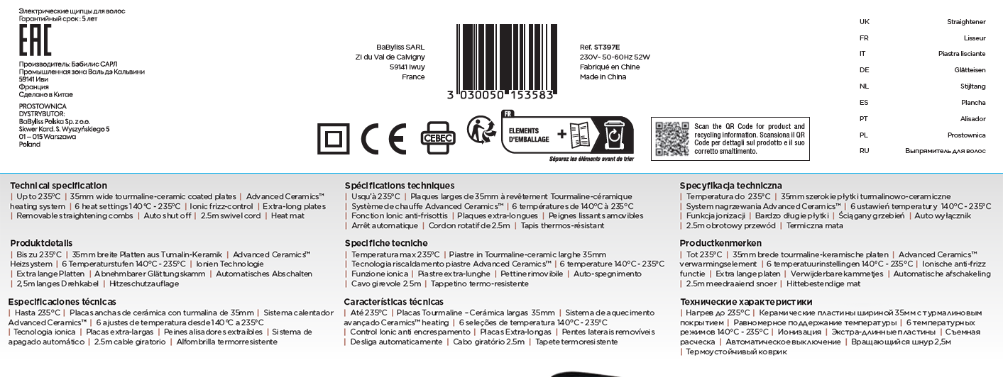 W BaByliss wyeliminowaliśmy plastik z naszych opakowań. W pudełku prezentowym zamiast plastikowych toreb i ochraniaczy znajdziesz teraz w pełni nadające się do recyklingu paper i tekturę, które chronią produkt i zapewniają, że dotrze w idealnym stanie. Dziękujemy za wsparcie i zrozumienie tej zmiany.