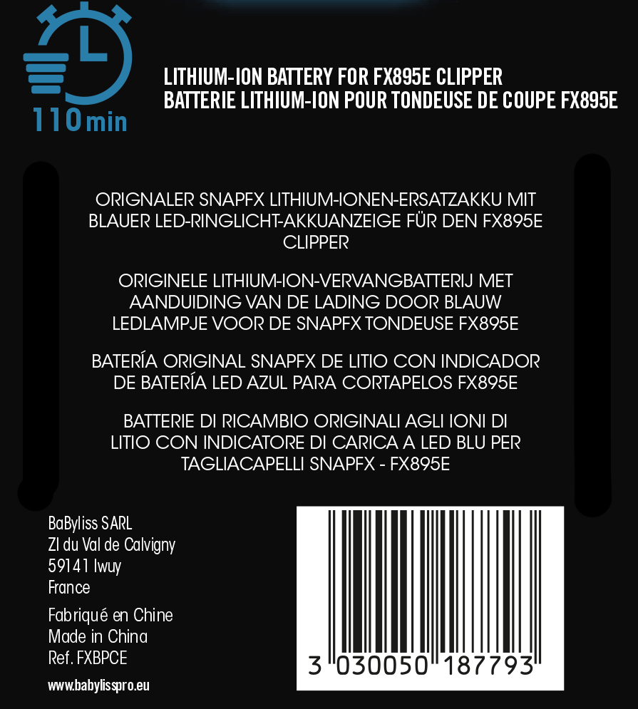 La nostra batteria litio-ioni è progettata per integrarsi alla perfezione nel rasoio SnapFX, assicurando prestazioni e compatibilità ottimali. Approfitta della libertà d’uso illimitato senza attacco alla rete elettrica, della velocità e della coppia costanti grazie alla tecnologia all’avanguardia di questa batteria. L’indicatore luminoso LED blu ad anello visualizza costantemente la carica residua della batteria. La batteria litio-ioni ha una durata molto più lunga; questo permette di continuare il lavoro di taglio senza doverla ricaricare costantemente
