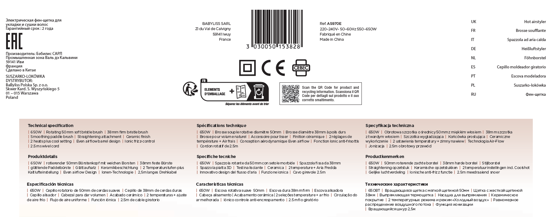 Hos BaByliss har vi tatt skritt for å fjerne all engangsplast fra emballasjen vår. I stedet for plastposer og plastbeskyttelse finner du nå helt resirkulerbart papir og papp som nøye beskytter produktet og sørger for at det kommer frem i perfekt stand. Vi takker for støtten og forståelsen av denne endringen.