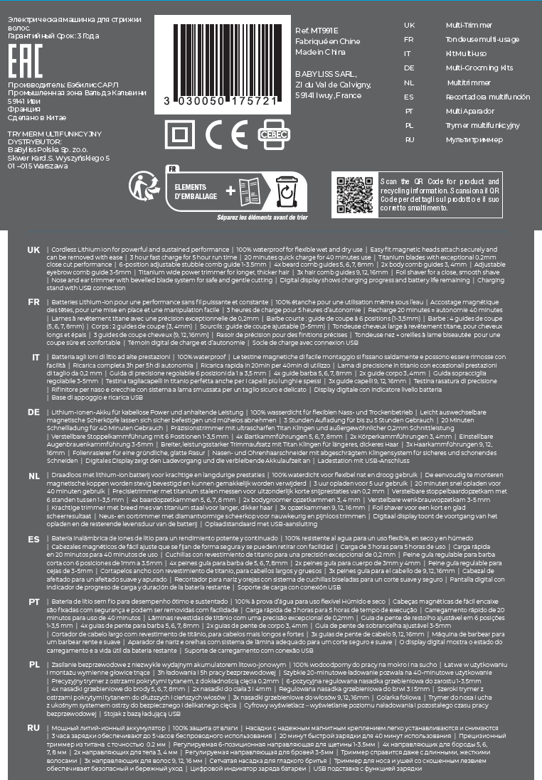 - Precyzyjny trymer z tytanu zapewniający bardzo dokładne wykończenie 0,2 mm