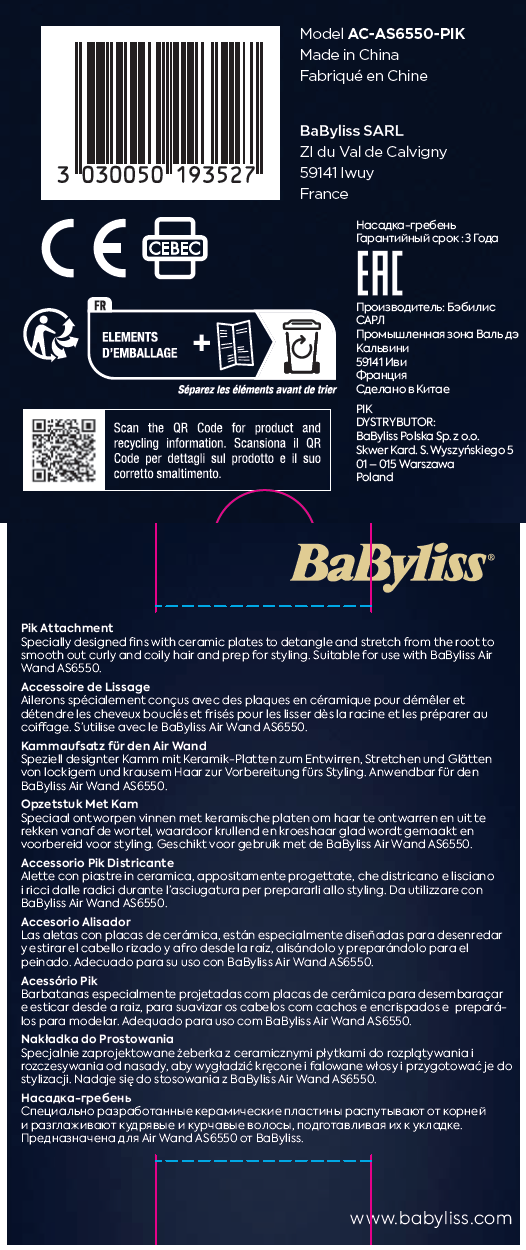 Geschikt voor gebruik met de BaByliss Air Wand AS6550.