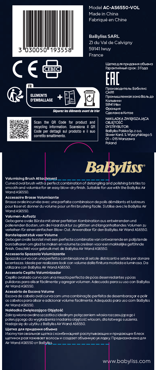Lämplig att användas med BaByliss Air Wand - Hårfön, plattång och styler, allt-i-ett.