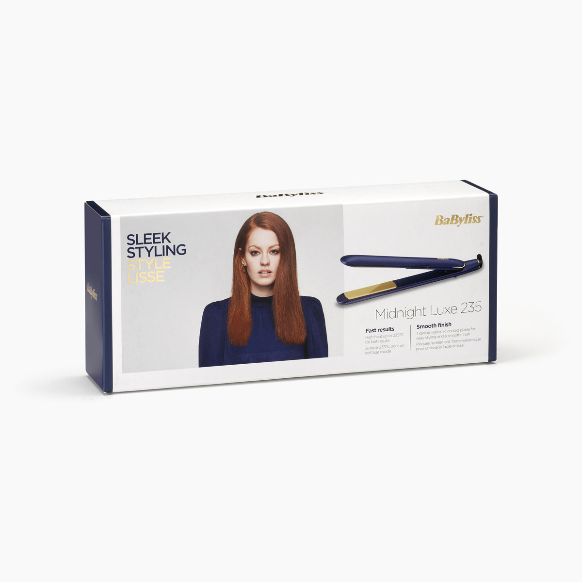 Our beautiful Midnight Luxe 235 Straightener leaves hair smooth and glossy. With ultra-smooth titanium-ceramic plates, they are fast to heat up, have 3 heat settings and a top temperature of 235°C. Part of our Midnight Luxe Collection.