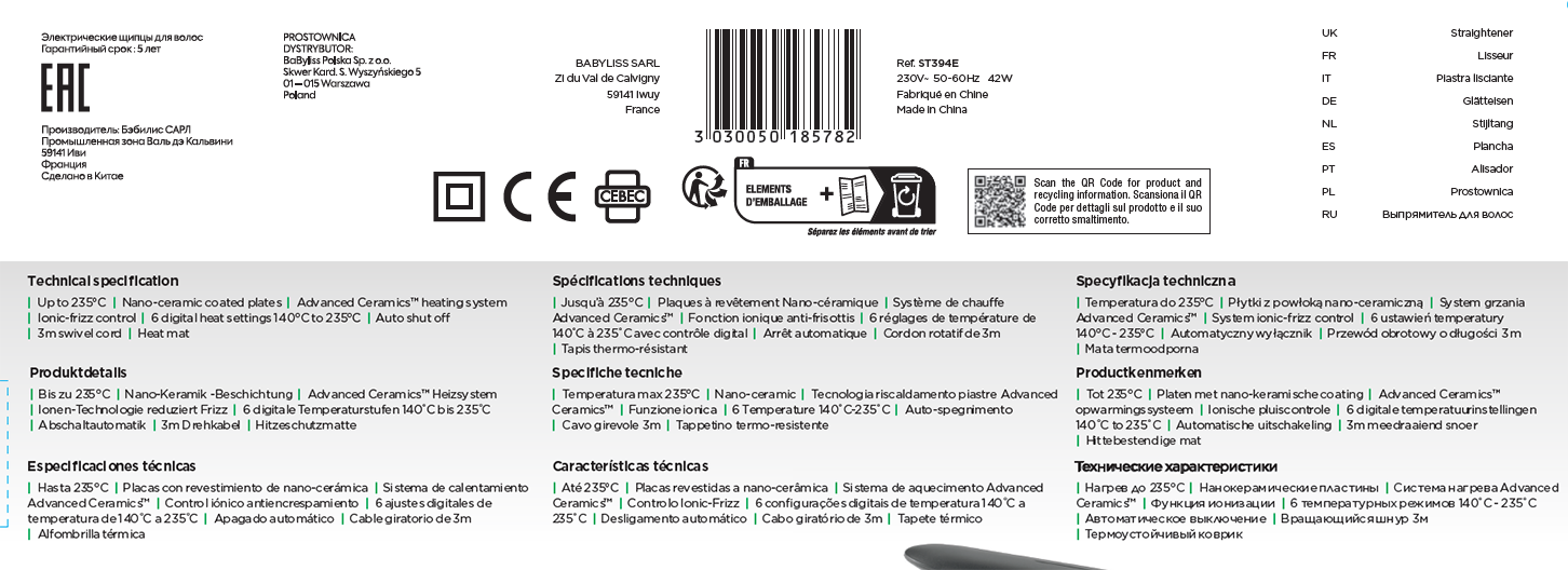 De BaByliss Smooth Pro 235 stijltang geeft een gladde, steile finish door middel van de 'smooth glide' nano-keramische platen en ionische technologie.