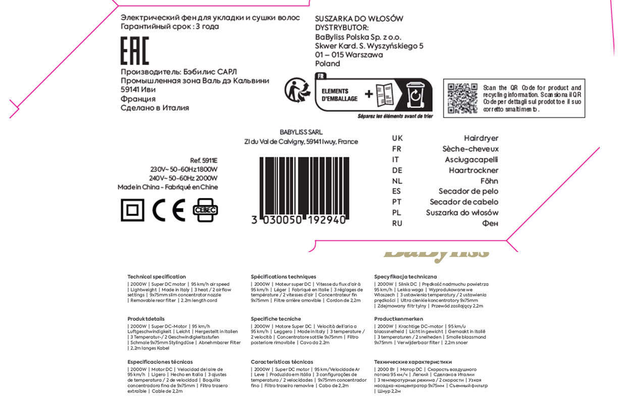 Italialainen Black Onyx Dryer 2000 W:n moottorilla ammattimaiseen suorituskykyyn, tasaiseen lopputulokseen ja kestävään viimeistelyyn.