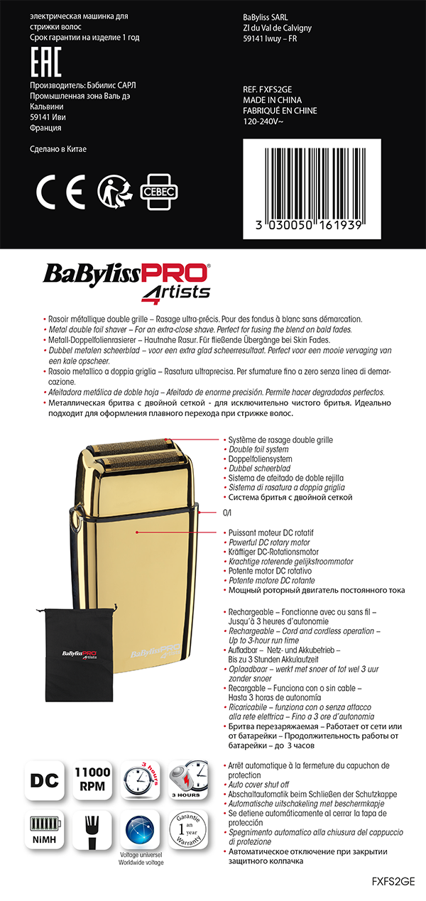 Vores Gold Foil Shaver er en kraftig shaver med dobbelt folieskær til præcis fade-barbering eller tæt, glat barbering op til hårgrænsen. De ultrafine, allergivenlige titaniumfoliskær giver et glat resultat, der holder længe, og ingen irritation. Den kraftige motor sikrer ensartet funktion med eller uden ledning i 180 minutter efter 3 timers hurtig opladning. Og det robuste metalkabinet sikrer lang levetid selv ved omfattende brug.
