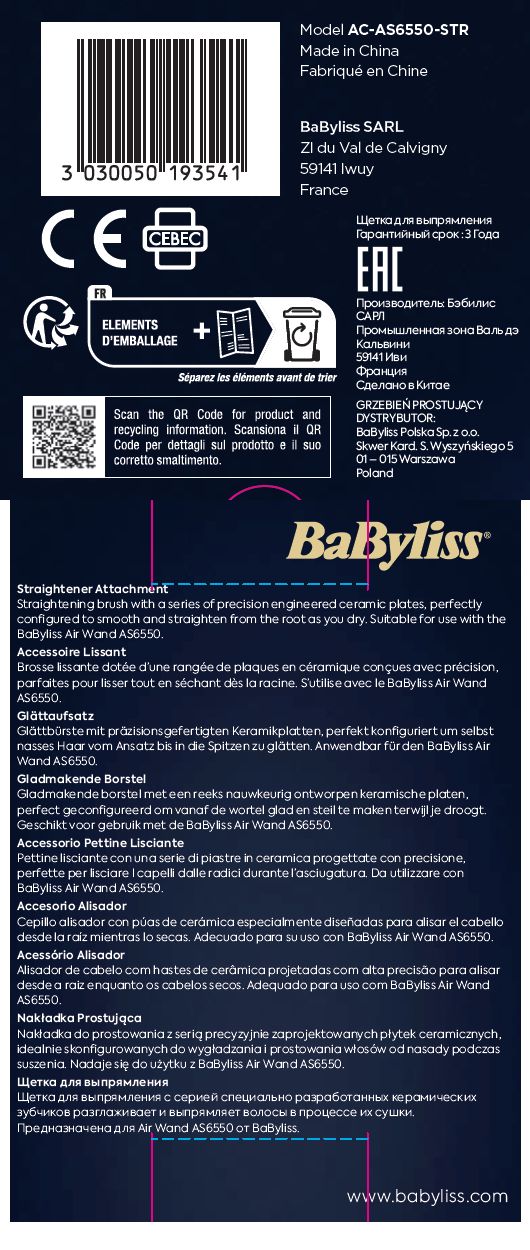 Geschikt voor gebruik met de BaByliss Air Wand AS6550.