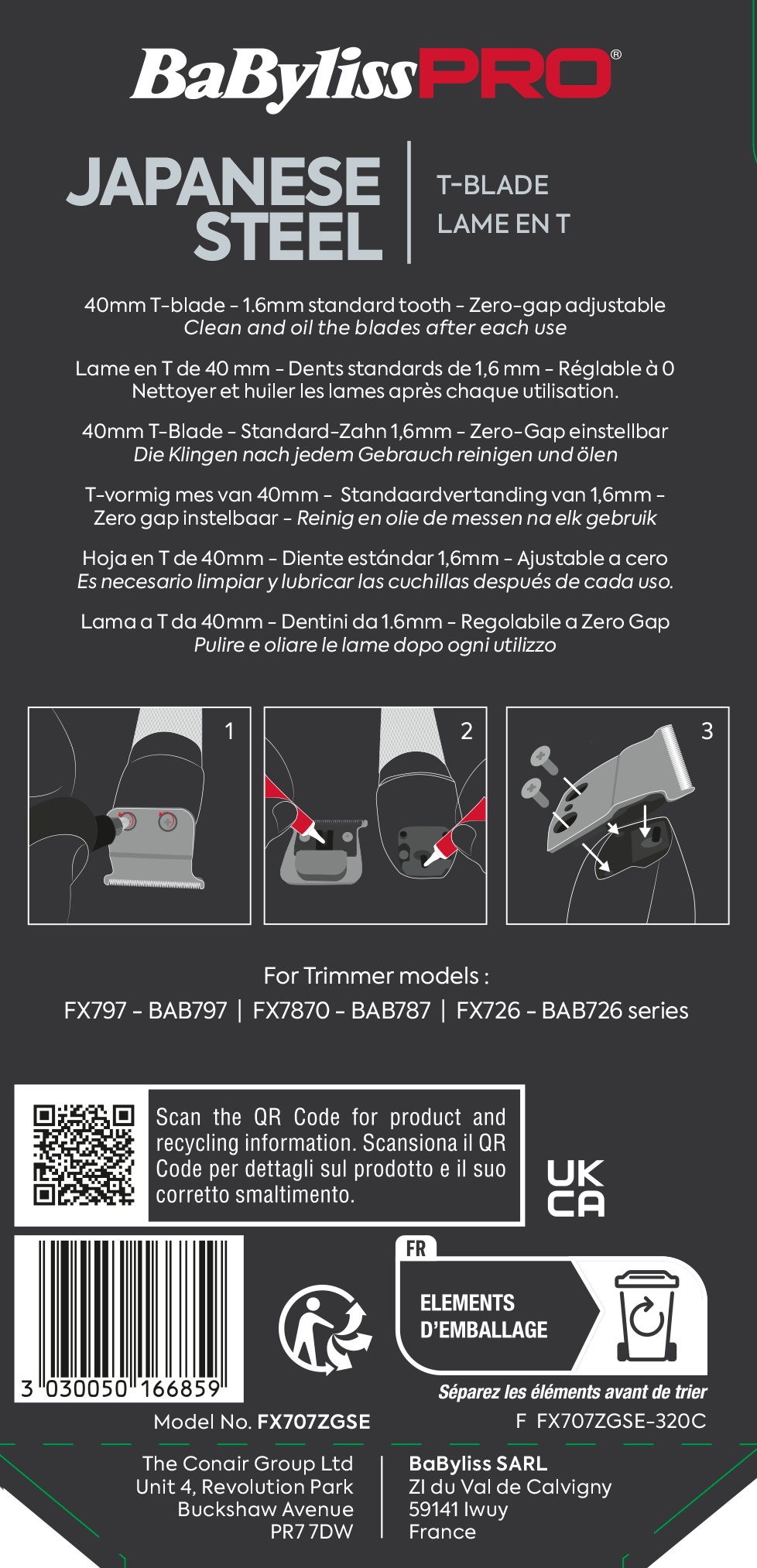 Nasze wymienne ostrze z japońskiej stali z możliwością wyzerowania (zero gap) jest stworzone do idealnych wykończeń, detali i kształtowania. Zerowanie umożliwia cięcie przy samej skórze. Kształt T ze standardowymi ząbkami 1.6 mm pozwala na precyzyjne cięcie, niezależnie od tekstury włosa i wrażliwości skóry. Japońska stal to wytrzymały metal, znany z niezrównanego cięcia i twardości, będący przy tym odporny na rdzę i korozję. Ostrze pasuje do trymerów FX797E, wszystkich FX7870 lub FX726 oraz do każdego narzędzia, w którym ostrze montowane jest na 2 otwory.