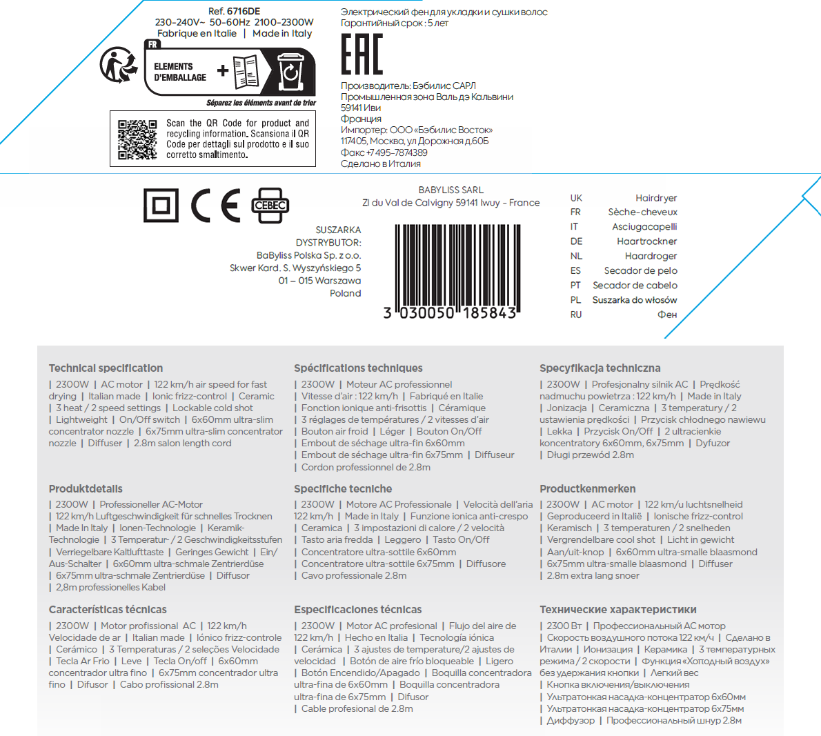 - 3 värmelägen/2 hastigheter för alla hårtyper