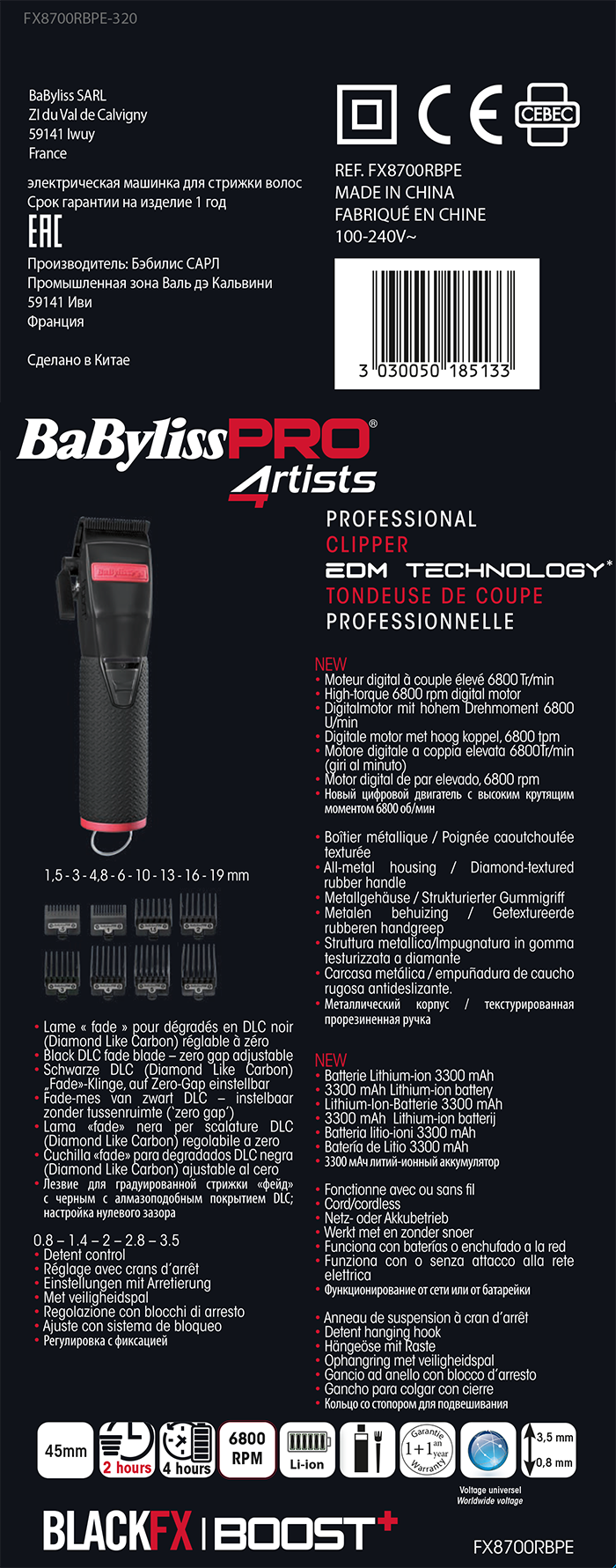 Unser BOOST+ Black Professional Clipper hat ein strapazierfähiges Metallgehäuse, das für Langlebigkeit sorgt. Der leistungsstarke Lithium-Ionen-Akku bietet 120 Minuten ununterbrochene Laufzeit mit einer 4-stündigen Schnellladung, mit garantierter anhaltender Leistung und Geschwindigkeit, auch bei niedrigeren Ladestufen. Der langlebige, drehmomentstarke und bürstenlose Motor sorgt für eine gleichbleibend hohe Klingengeschwindigkeit, auch bei längerem und dickerem Haar. Die präzisionsgefertigten DLC-Klingen sorgen für leichtes, sanftes Schneiden bei niedrigeren Klingentemperaturen. Der Griff ist mit einem neuen, diamantbeschichteten Gummi überzogen und sorgt so für noch mehr Komfort und Kontrolle bei der Anwendung.