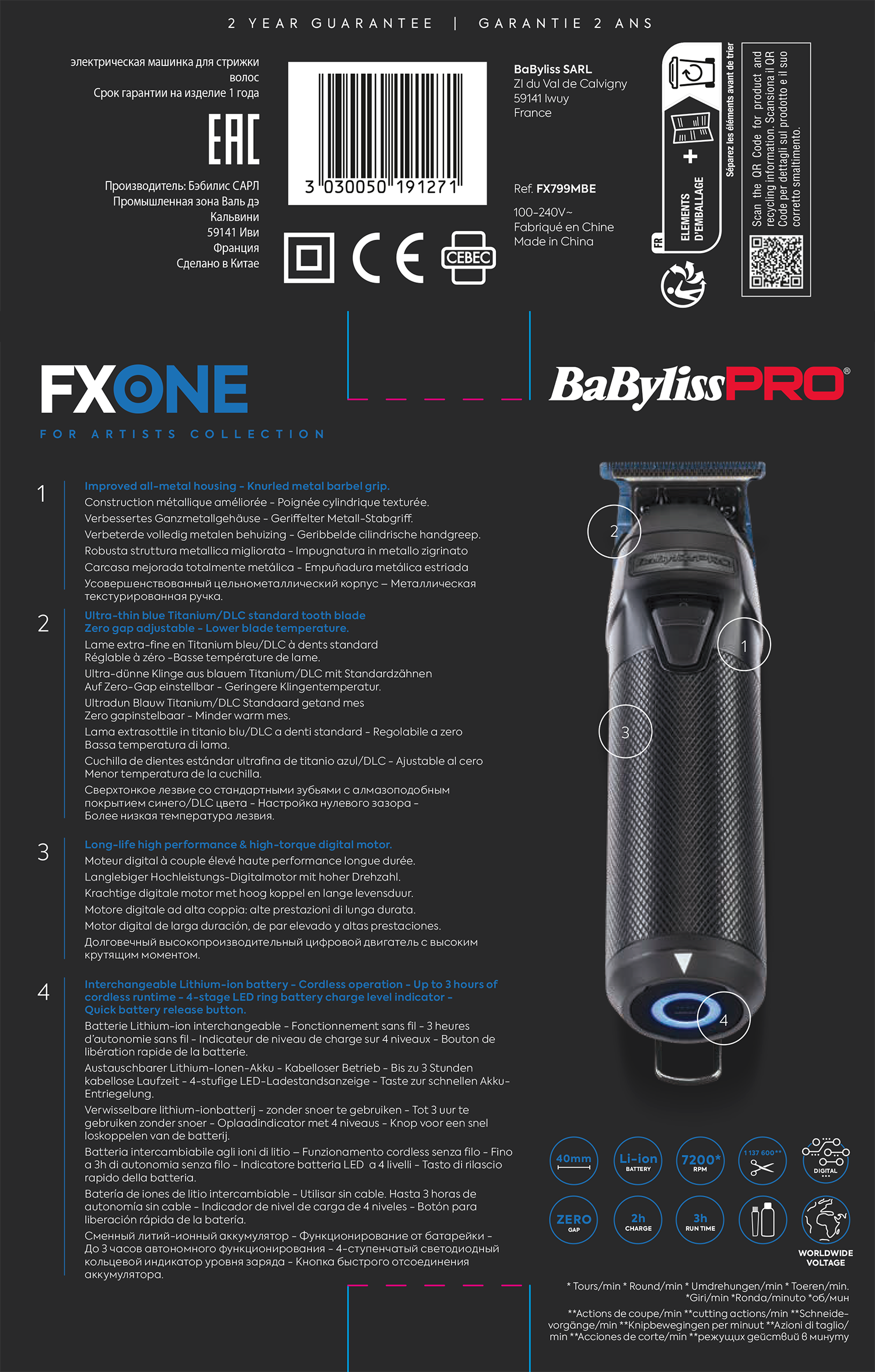 Trymer FXONE All-Metal jest wyposażony w nowy wymienną baterię litowo-jonową FXONE z przyciskiem szybkiego zwalniania baterii. Bezszczotkowy silnik o długiej żywotności i wysokim momencie obrotowym zapewnia stałą, szybką prędkość ostrza, nawet w przypadku pracy z dłuższymi, grubszymi włosami. Trymer jest wyposażony w całkowicie odsłonięte ostrze Gold Titanium T z ząbkami o standardowej głębokości, które ma możliwość regulacji do zera i zapewnia widoczność 360° potrzebną do skomplikowanych prac. Użyj tego profesjonalnego trymera aby uzyskać wyraźne krawędzie i ostre linie oraz wykonywać precyzyne cięcia i ciesz się 3-godzinnym czasem pracy po 2-godzinnym szybkim ładowaniu. Posiada NOWĄ ulepszoną, całkowicie metalową obudowę z ergonomicznym wgłębieniem na palce, zdejmowaną magnetyczną klapkę ułatwiającą czyszczenie oraz NOWĄ stożkową podstawę z ukrytym haczykiem do zawieszania. Sprawdź całkowicie metalową maszynkę FXONE Gold FX899GE i golarkę Gold FX79FSGE, aby stworzyć właną kolekcję narzędzi FXONE, kompatybilnych z tą samą baterią.