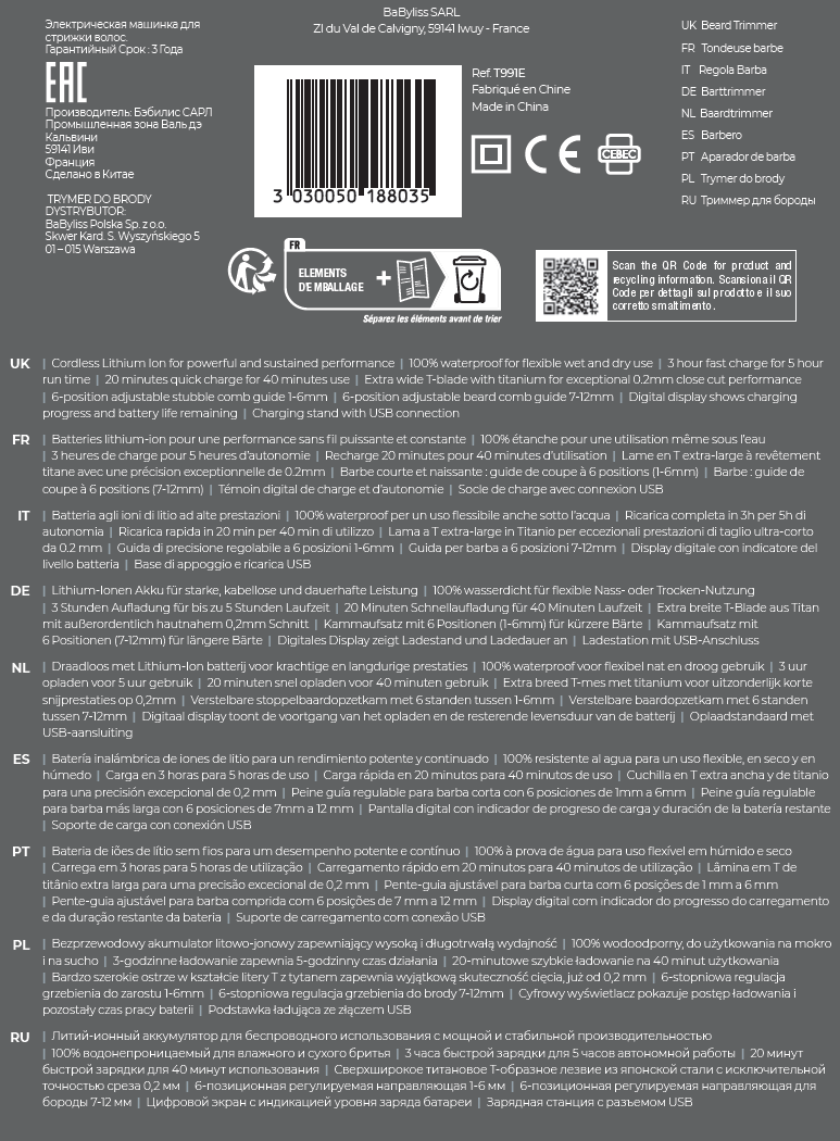 Ammattitason partatrimmeri, jossa vankka metallikädensija ja erinomainen valmistuslaatu, suunniteltu vaivattomaan trimmaukseen tasaisella lopputuloksella.